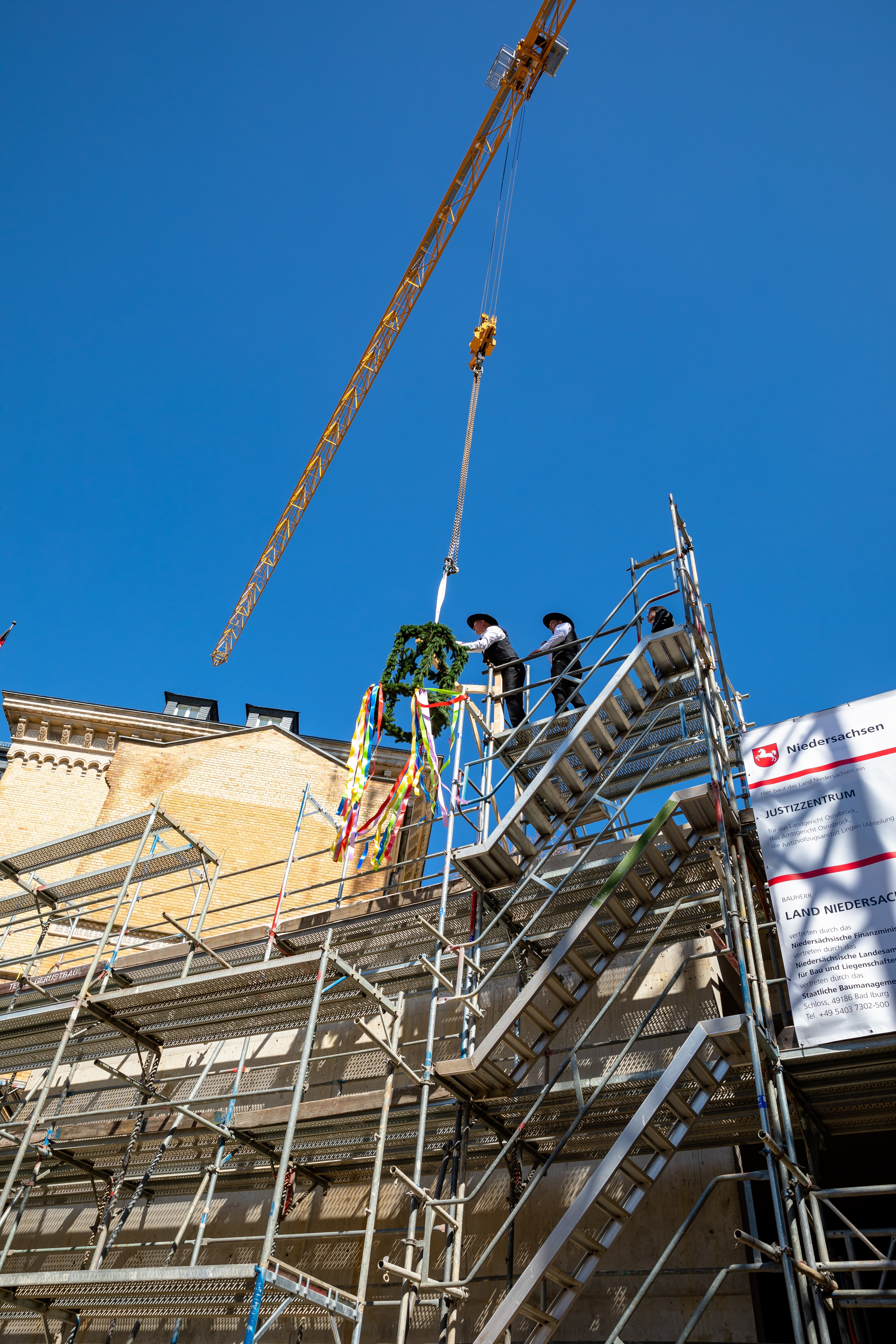 Mit einer kleinen Feierstunde wurde am 19.04.2023 das Richtfest des Justizzentrums Osnabrück begangen. Rund 100 Gäste aus der Landes- und Kommunalpolitik sowie der Justiz waren der Einladung des staatlichen Baumanagements Hannover gefolgt. Traditionell markiert das Richtfest den Abschluss des Rohbaus. Die Anwesenden konnten sich selbst davon überzeugen, wie weit die im Jahr 2020 begonnenen Arbeiten schon gediehen sind. Klar erkennbar ist bereits die große, zweigeschossige repräsentative Eingangshalle, sowie der insgesamt sechsgeschossige Neubau.