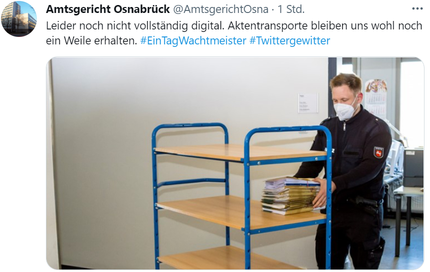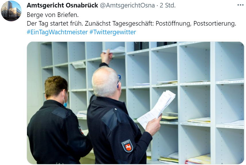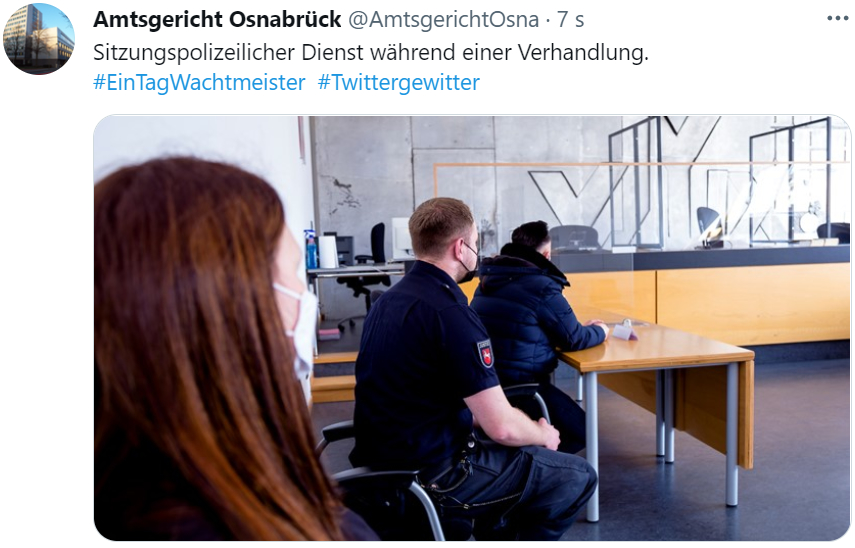 Der zweite Teil unserer Serie „Ein Tag…“ beschäftigt sich mit dem Alltag der Damen und Herren Justizwachtmeister. Sie sind diejenigen, die für die Sicherheit am Gericht sorgen und das Gericht buchstäblich am Laufen halten. Einlasskontrollen, Vorführungen, Aktenbewegungen, IT-Aufgaben und vieles mehr. Justizwachtmeisterinnen und Justizwachtmeister sind Allrounder und Praktiker! Besonnen bleiben, anpacken und Teamwork sind besondere Fähigkeiten, die gefragt sind.